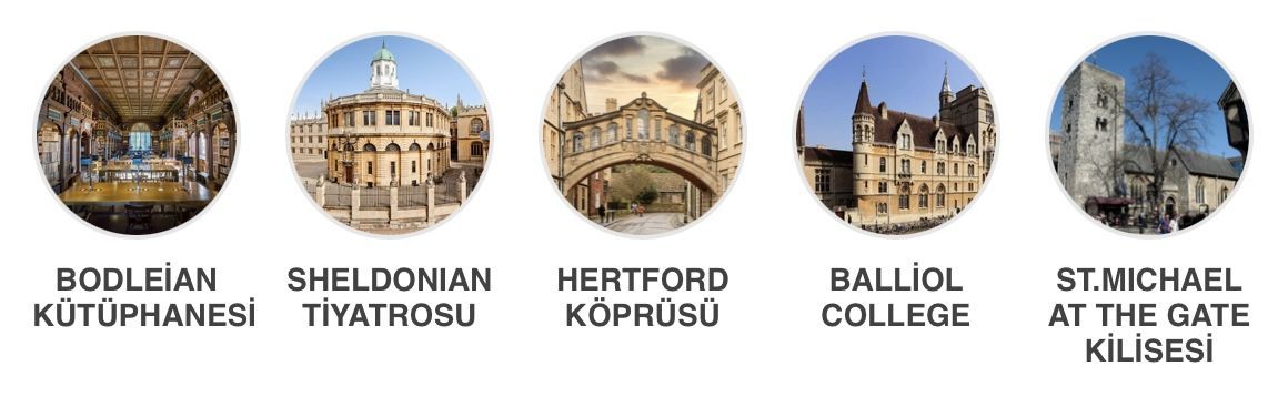 Oxford şehir ve üniversite turu sırasında gezip göreceğiniz yerler şunlardır.